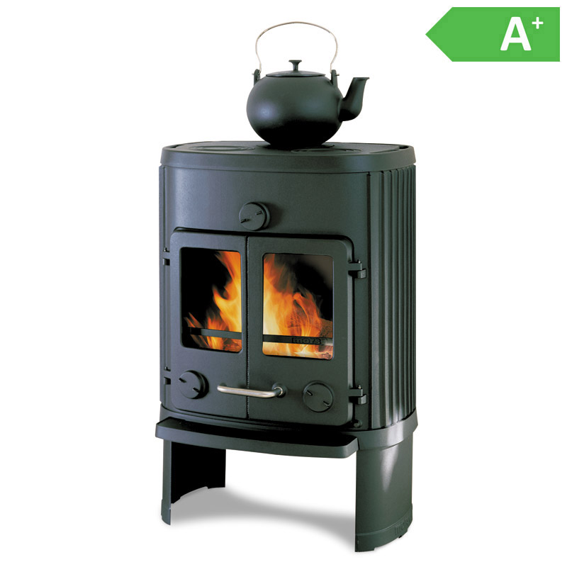 Kaminen är nu utrustad med ett så kallat kallt handtag, vilket gör det säkrare och enklare att öppna dörren utan att riskera brännskador. Dessutom har den en sotfri glaslucka som ger en klar och tydlig vy av elden, vilket skapar en mysig atmosfär i hemmet.